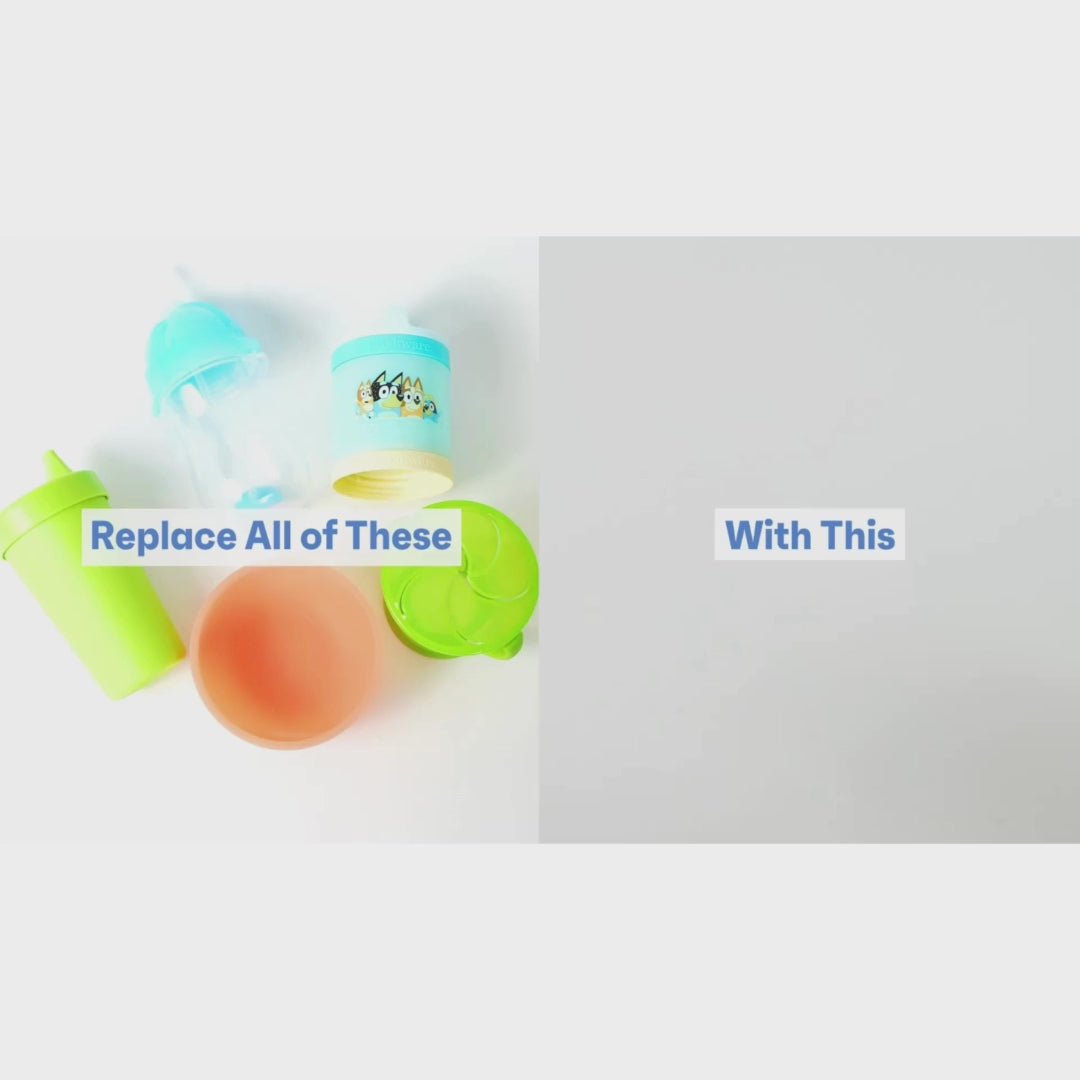 Whether you're feeding purees, snacks, or drinks, swap between the snack lid, suction lid, or sippy lid + straw to fit your little one’s stage and mealtime needs.